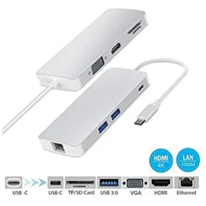 8 рсдAdapter-konvertor TIP C na VGA+HDMI+SD/MICRO SD+RJ 45+2xUSB3.0+TIP C