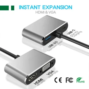 Adapter USB 3.1 Tip C (M) – HDMI+VGA+ 3.0 USB + tip C