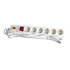 Kabl naponski produžni 6 x šuko 5m sa prekidacem i zaštitom (beli)