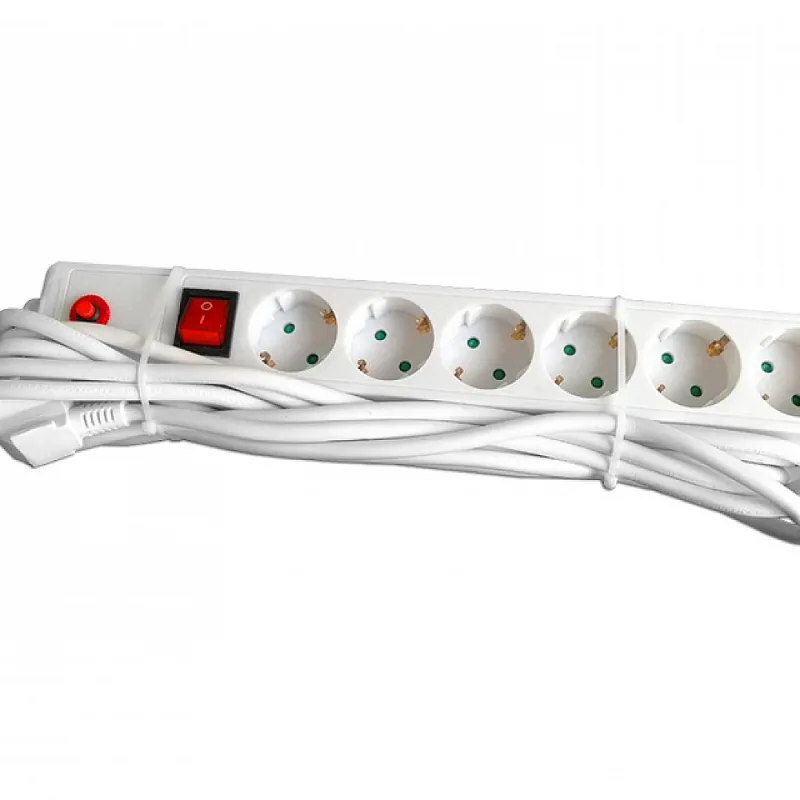 Kabl naponski produžni 6 x šuko 5m sa prekidacem i zaštitom (beli)