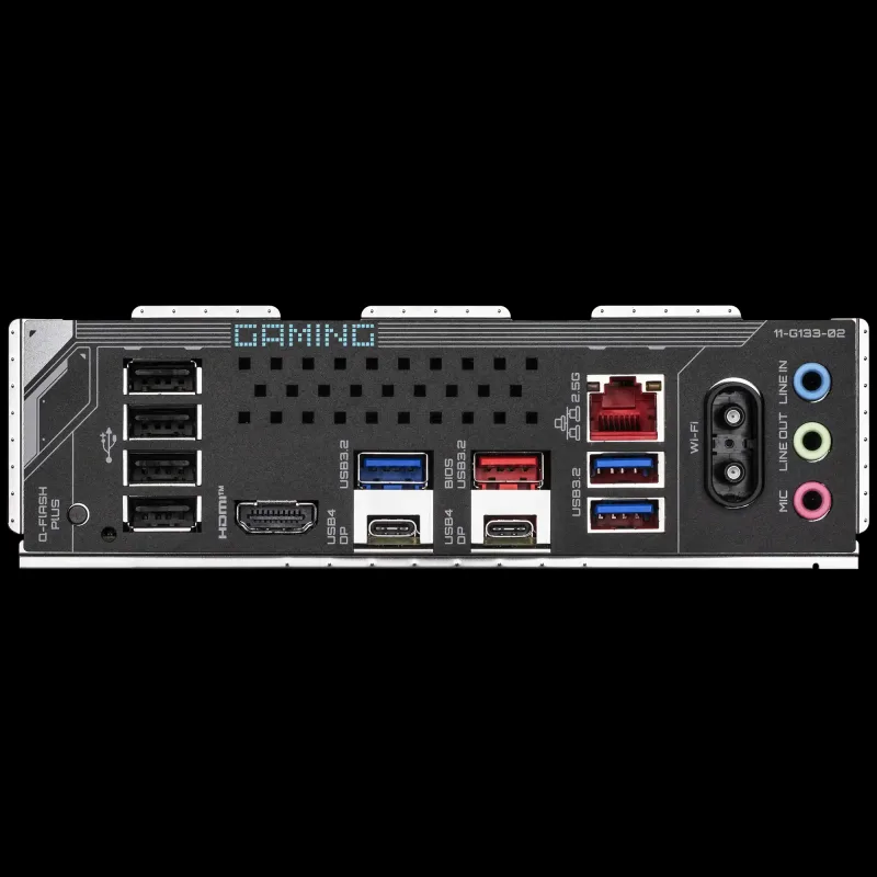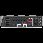 | Zadnji panel konektori | 1 x Q-Flash Plus dugme 2 x antenna konektora (2T2R) 1 x HDMI port 2 x USB4® USB Type-C® portova (DisplayPort*) 1 x USB 3.2 Gen 2 Type-A port (crveni) 3 x USB 3.2 Gen 1 portova 4 x USB 2.0/1.1 portova 1 x RJ-45 port (Ethernet) 3 x audio priključka (Stvarna podrška može zavisiti od CPU-a.) |