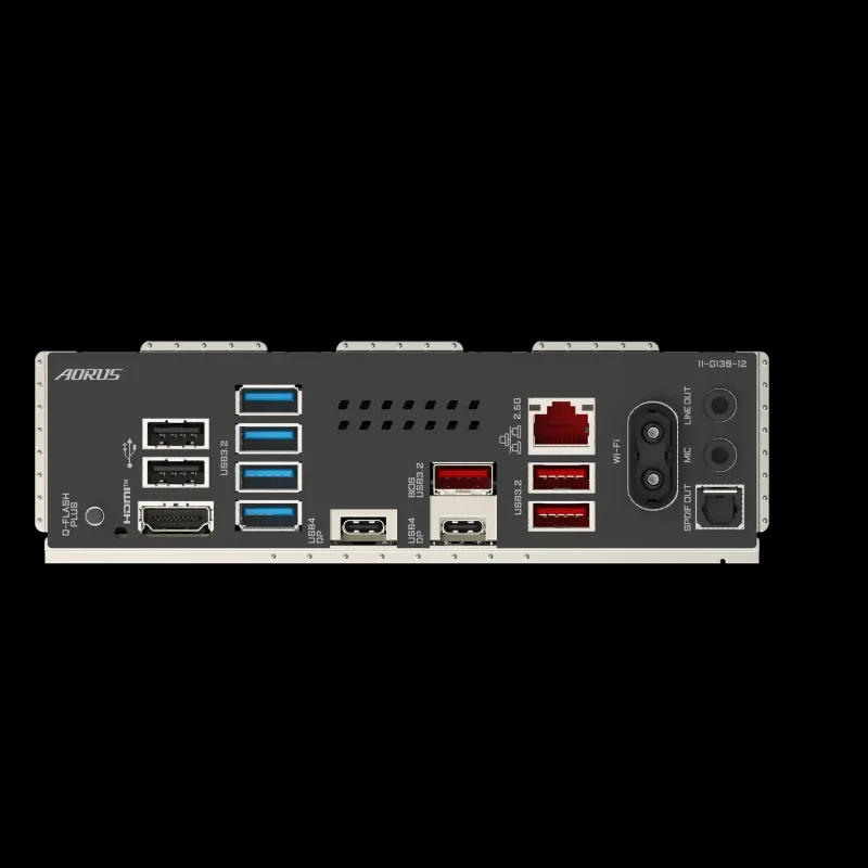 | Konektori na zadnjoj strani | 1 x Q-Flash Plus button 2 x USB 2.0/1.1 ports 1 x HDMI port (Note) 4 x USB 3.2 Gen 1 ports 2 x USB4 USB Type-C port (DisplayPort (Note)) 3 x USB 3.2 Gen 2 Type-A ports (red) 1 x RJ-45 port 2 x antenna connectors (2T2R) 1 x optical S/PDIF Out connector 2 x audio jacks |