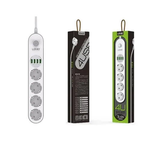 Produžni kabl 4R/2m + 4xUSB beli, LDNIO